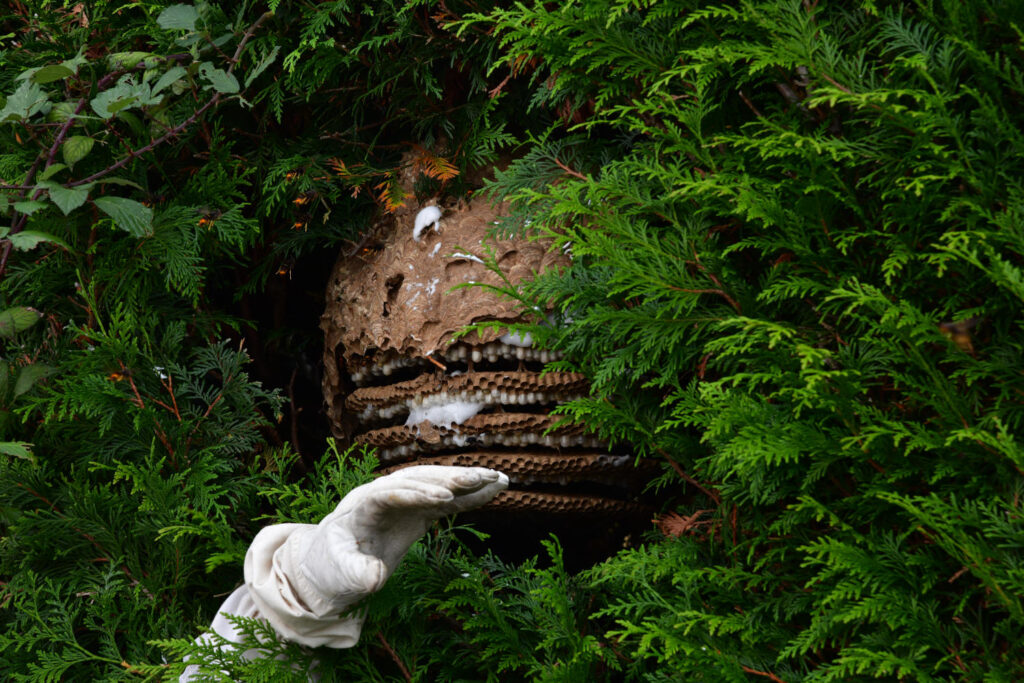 Wichtig: Achten Sie auf Ihre persönliche Sicherheit. Tragen Sie immer die nötige persönliche Schutzausrüstung. Melden Sie die aufgefundenen Nestern der in Ihrem Bundesland zuständige Behörde und entfernen Sie kein Nest, wenn Sie nicht den nötigen Fachkundenachweis besitzen.